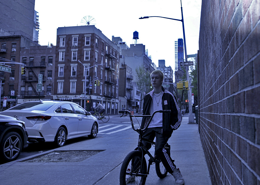 Shooting with tungsten balance to create editorial-style Top Boy meets NYC vibe. No lighting, just the sun setting behind Manhattan.