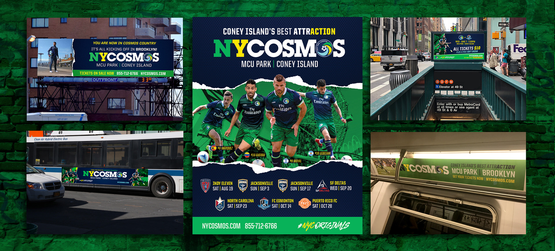Subway car cards on all MTA lines, digital urban panels in targeted subway stations, billboards approaching Coney Island and in MCU area and bus sides covering Brooklyn routes all contributed to generating high awareness of the NY Cosmos were now located in Brooklyn and tickets were on sale.